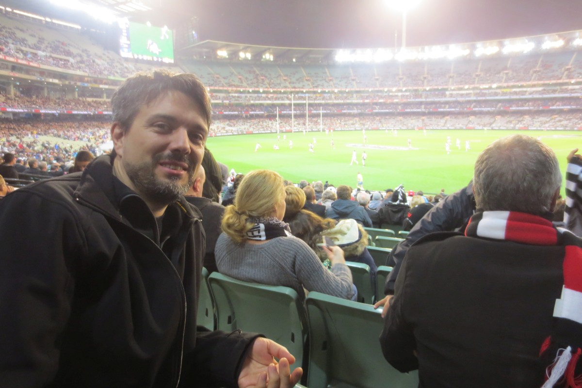 My introduction to the Australian culture progressed another step: last night I was invited to go and see a game of Footy: a mixture of soccer and rugby, played on a round filed and watched by a sizable part of the Australian populations… well, at least the ones living in Melbourne. This city alone is home to 10 of the 18 teams organized in the Australian Football League.