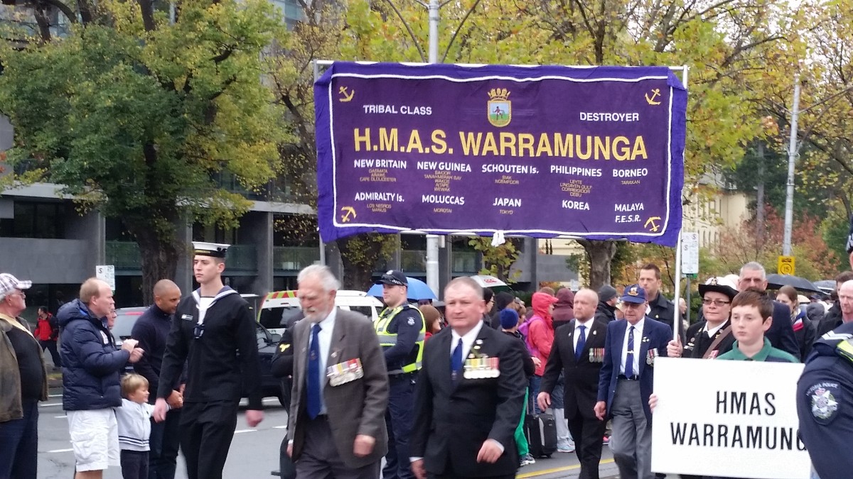 It was raining when I got there. But that did not deter the thousands of people lining St. Kilda Road to watch the military parade go by.