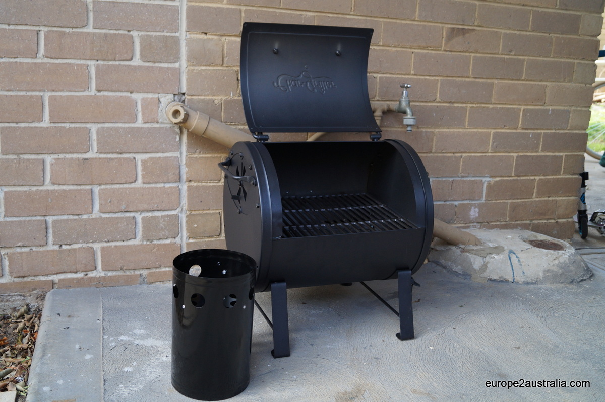 Yesterday we went and got us a BBQ set. Not one of those gas ones that are so popular here, but a proper, charcoal one. And since the weather was quite good today, we decided to fire it up and have our first Oz BBQ… even if it was without the proverbial shrimp.