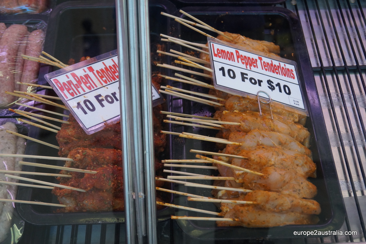 While this was going on, we had time to go shopping for meat to put on the thing. We have found out that, contrary to the Netherlands, meat at the butchers here is not only as cheap as in the supermarkets, it’s also twice as yummy. So no more pre-packaged steaks for us!