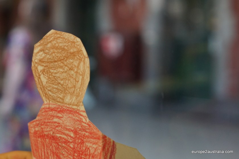 First we went in the train to go to the city. In the train we had a guy with us called flat Luke*. He is made of paper and our grandpa and his partner where there too.