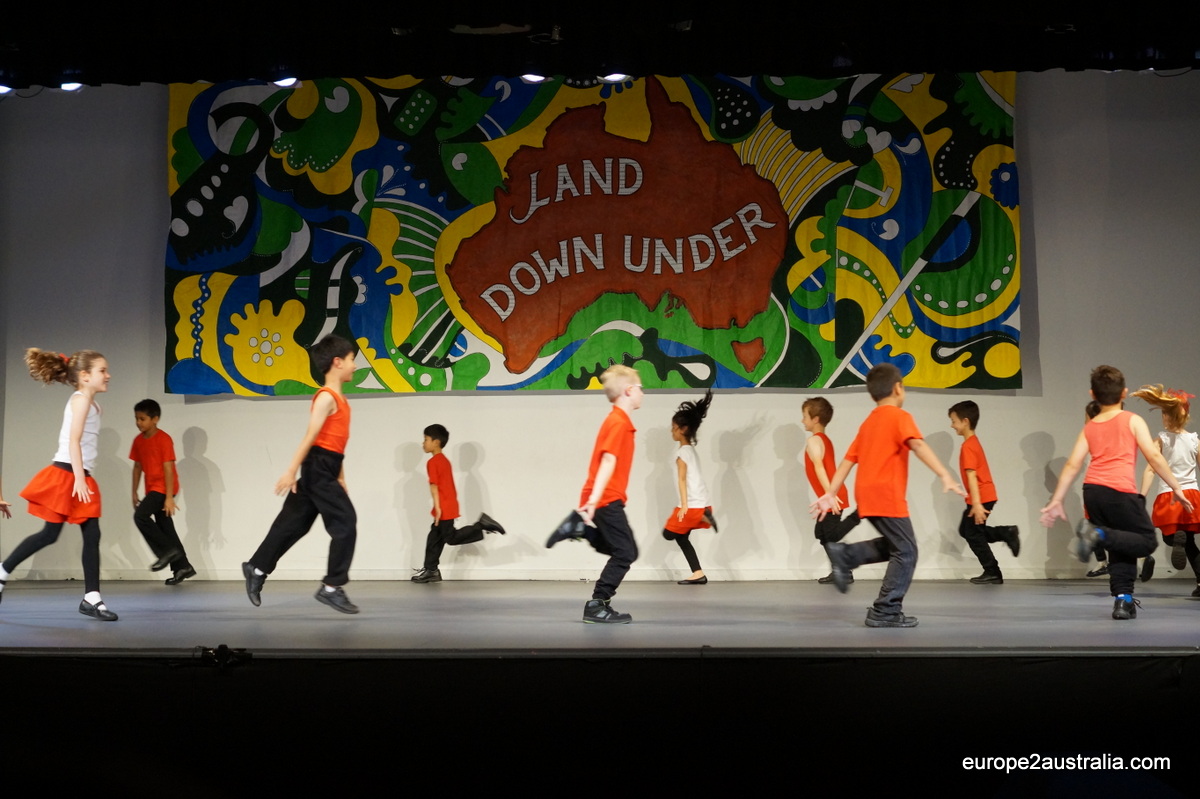 The show had the title “Land Down Under” (as in the song). The students were divided according to age and performed dances that were (loosely) based on the different regions of Australia. It was all tied together by a returning story of a family trying to decide where to go for vacation, being unable to make up their minds.