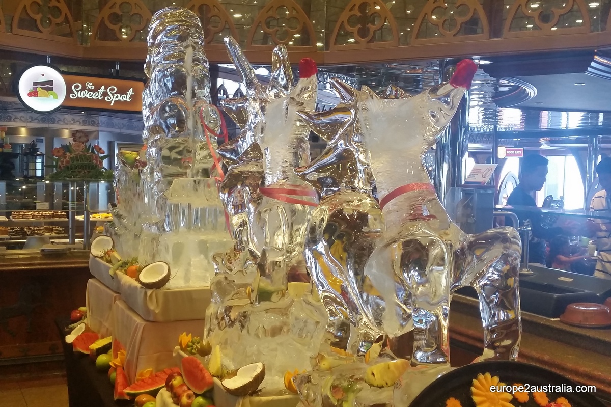 And, since we were on a cruise, the stereotypical ice sculpture was in the shape of a sleigh (although filled with tropical fruit instead of presents).