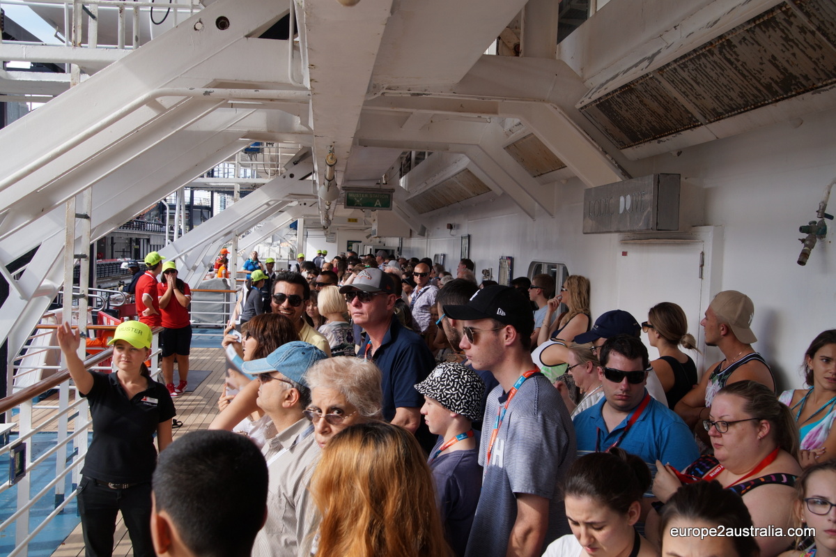 After being checked in by Jeroen (how come there are so may Dutchies here in Australia?!) we got to our cabins, where our bags were already waiting. And before we could even properly check out the ship, the lines were already being cast off. Driving out of Sydney harbour with the setting sun was a sight to see, especially since we were able to do so from our own balcony.